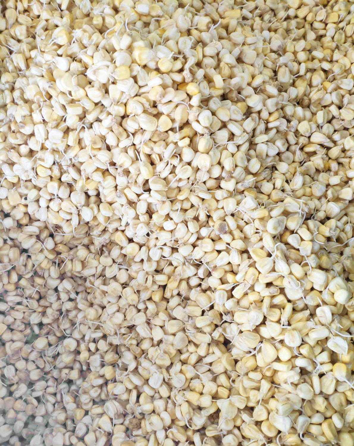 A small fraction of the corn used in the Abasolo whisky mash is malted. Whole grains of cacahuazintle corn are germinated in the dark until the first leaf and first root are formed. The maize is then milled and incorporated into the mash.